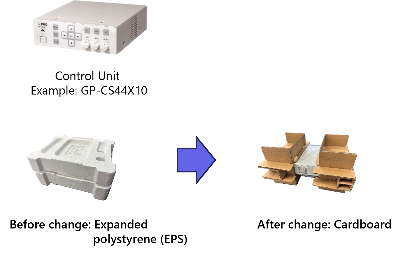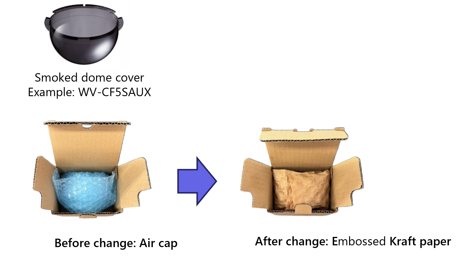 For some lines, all use of expanded poly-ethylene (EPE), the main material conventionally used for product cushioning, has been switched to paper (corrugated cardboard), thereby reducing plastic packaging materials by approximately 80% compared with previous. *1